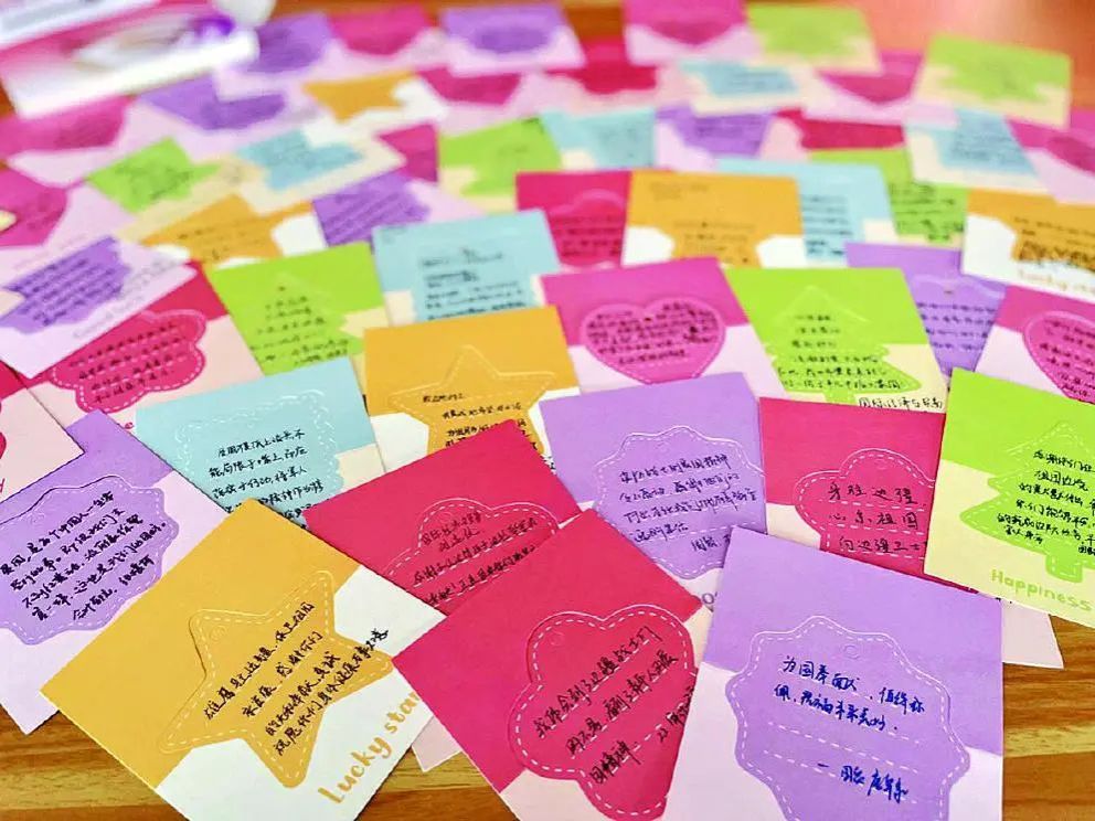 课堂上同学们踊跃发言,下课后,没有来得及发言的两校同学,纷纷在寄给边检站民警的小卡片上书写自己的心声,期待未来自觉担当使命,努力把爱国之情、报国之志转化为自己的实际行动。