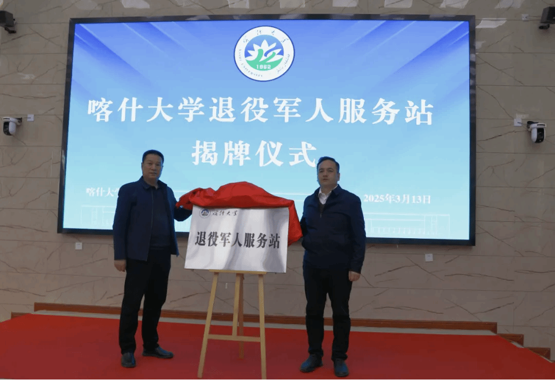 揭牌仪式上,喀什地区退役军人事务局与喀什大学共同为服务站揭牌,并为喀什大学退役军人志愿服务队授旗,向退役大学生代表赠送政策“大礼包”。