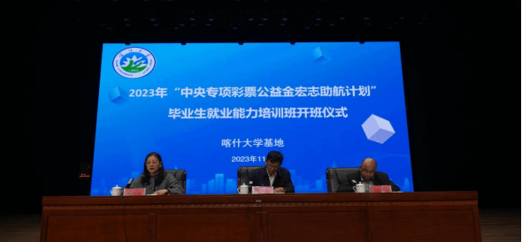 仪式上,喀什大学就业指导中心负责人总结了“中央专项彩票公益金宏志助航计划”喀什大学基地组织开展培训工作取得的成效和经验做法;介绍了为确保本次培训工作高效进行,喀什大学基地将会加强课程建设和师资队伍建设,采取课前调研和课后总结等方式,认真组织讲师团成员说课、评课、集体备课,不断优化课程内容,注重课程内容的实操性和实效性,更加精准、全面、细致地做好参训学员的就业指导帮扶工作,助推宏志助航学员更加高质量充分就业。