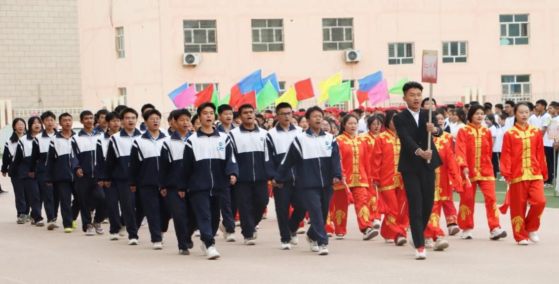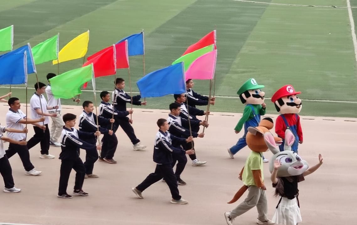 当激昂的运动员进行曲响起,国旗仪仗队、彩旗方阵和运动员代表队依次入场。他们步伐坚定有力、口号响亮高亢,充分展现了喀大附中学子的青春风采。
