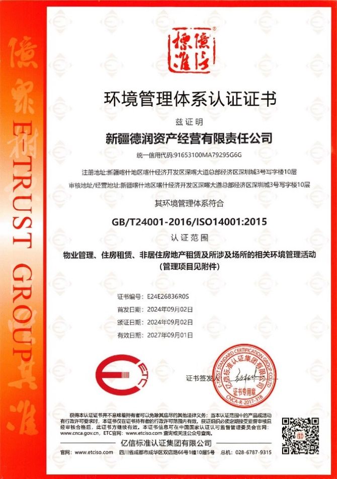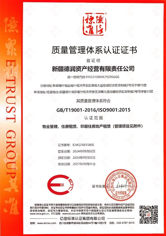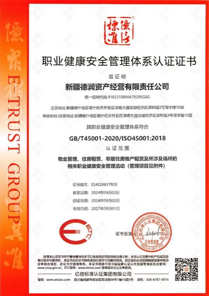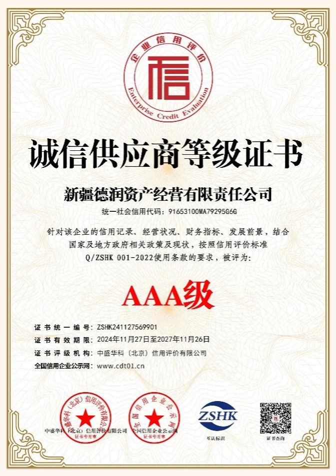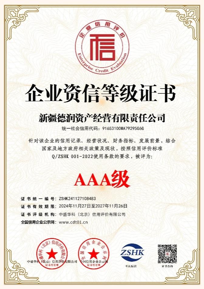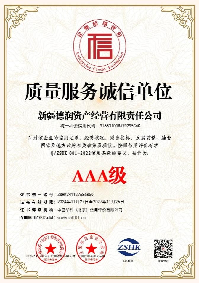 近日,喀什大学校属企业——新疆德润资产经营有限责任公司成功获得“ISO体系”认证,并荣获“AAA级企业信用等级”评定的多项荣誉证书。