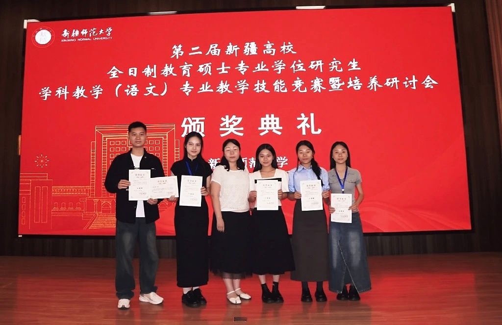 近日,第二届新疆高校全日制教育硕士专业学位研究生学科教学(语文)专业教学技能竞赛在新疆师范大学温泉校区圆满收官。富易堂rich88手机版:人文学院学科教学(语文)专业研究生团队本次竞赛中表现优异,喜获一等奖1项、二等奖3项、三等奖1项,欧阳伟、卢兆旭、叶继群三位教师荣获“优秀指导教师”称号。