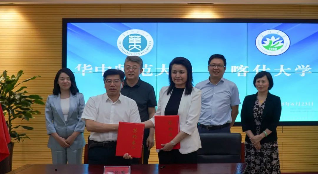 会上,双方签署合作协议,并共同为“华中师范大学国家教师发展协同创新实验基地新疆实验中心”揭牌。