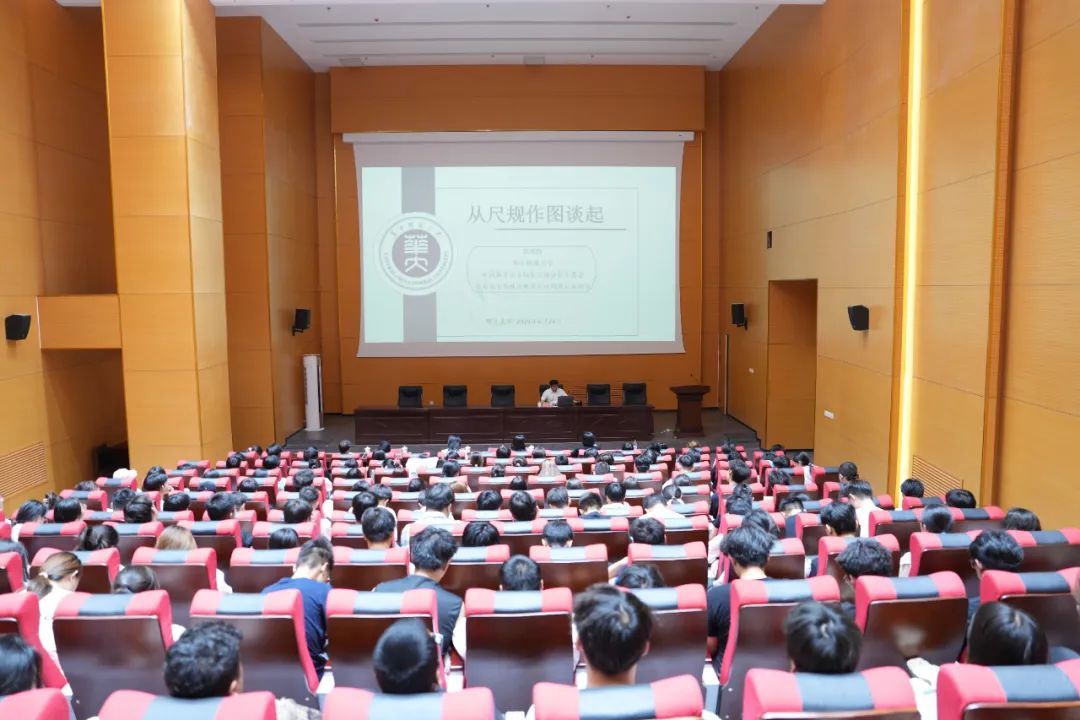 彭双阶以《从尺规作图谈起》为题,从尺规作图的历史渊源切入,结合高斯19岁用尺规作出正十七边形的故事,展现数学探索中“突破极限”的魅力;又以黄金分割比为例,解析其与建筑、艺术、斐波那契数列的内在关联,让抽象数学概念更可感。他强调,数学发展凝聚着前人智慧,从古希腊“三大尺规不能作图问题”的千年探索到现代深耕,这种“向真理靠近”的精神,正是青年学子最该传承的财富。