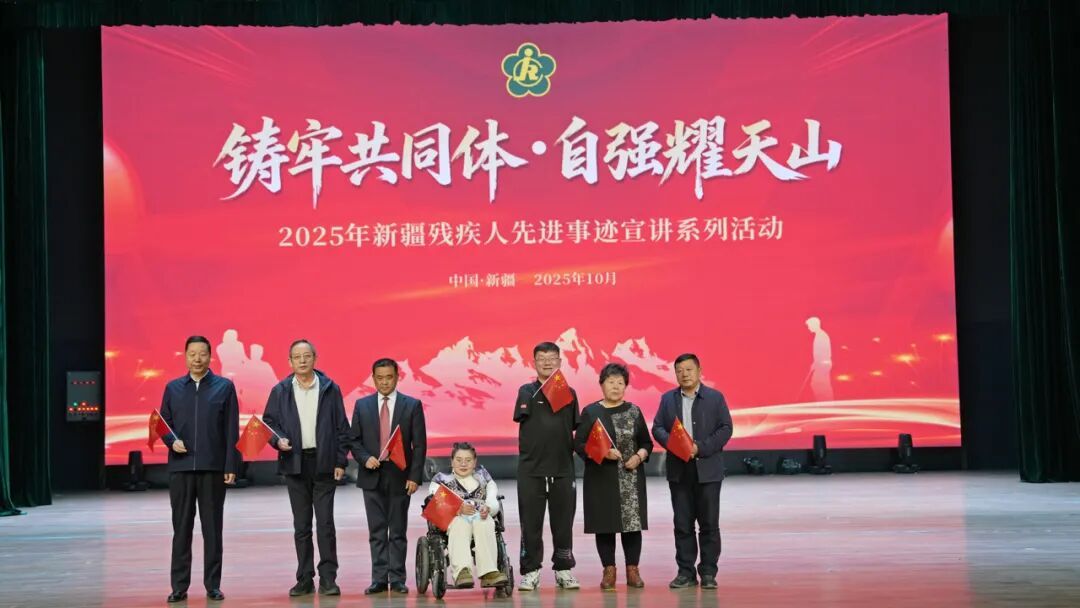 10月24日,“铸牢共同体?自强耀天山”2025年新疆残疾人先进事迹宣讲活动在喀什大学新泉校区新时代会堂举行。新疆维吾尔自治区残疾人联合会党组成员、副理事长陈宏博,喀什大学党委常委、宣传部长丛培兵,喀什地区残联党组书记张立江与学校各部门、学院师生代表600余人共同参与活动,聆听自强不息的生命赞歌,感受砥砺奋进的精神力量。