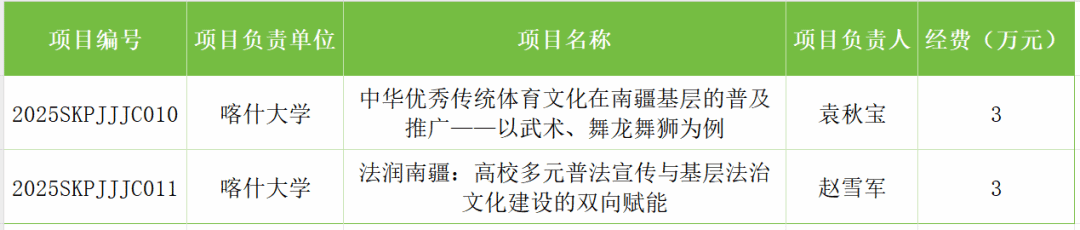 近日,自治区社科联公布2025年自治区社会科学普及项目(中华优秀传统文化进基层专项)立项结果,本次专项共立项16个,其中喀什大学获批2项,与新疆医科大学、新疆师范大学并列全区高校立项数量第一。
